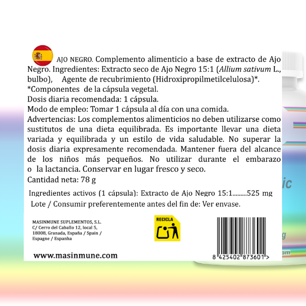 Fórmula Masinm a base de extracto concentrado de Ajo Negro 15:1. No huele ni pica la boca