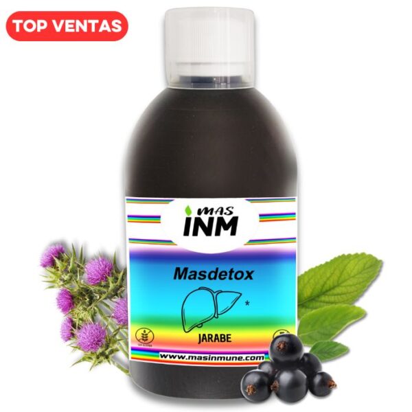 Masdetox Hígado es un complemento alimenticio en formato líquido formulado a base de extractos vegetales, vitaminas y otros nutrientes seleccionados. La combinación incluye cardo mariano, alcachofa, boldo, grosellero negro, desmodium, junto con MSM, inositol y colina, además de un complejo de vitaminas.