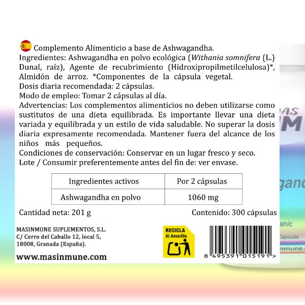 Fórmula Masinm de Ashwagandha en polvo, 100% Orgánica.