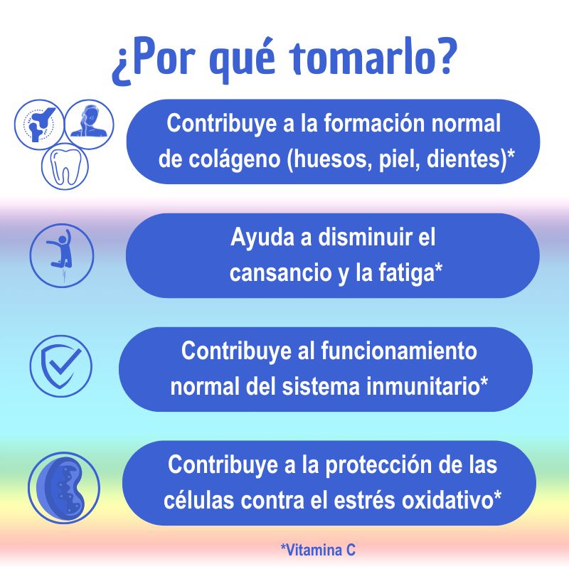 – Para complementar tu alimentación con vitamina C efectiva de fácil absorción y alta biodisponibilidad.