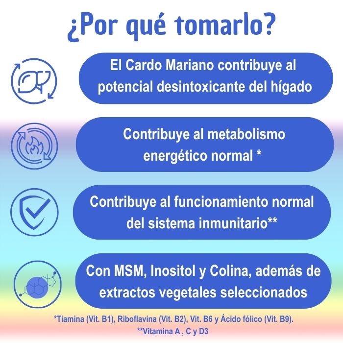 – El cardo mariano (Sylibum marianum (L.) Gaertn.) contribuye al potencial desintoxicante del hígado.